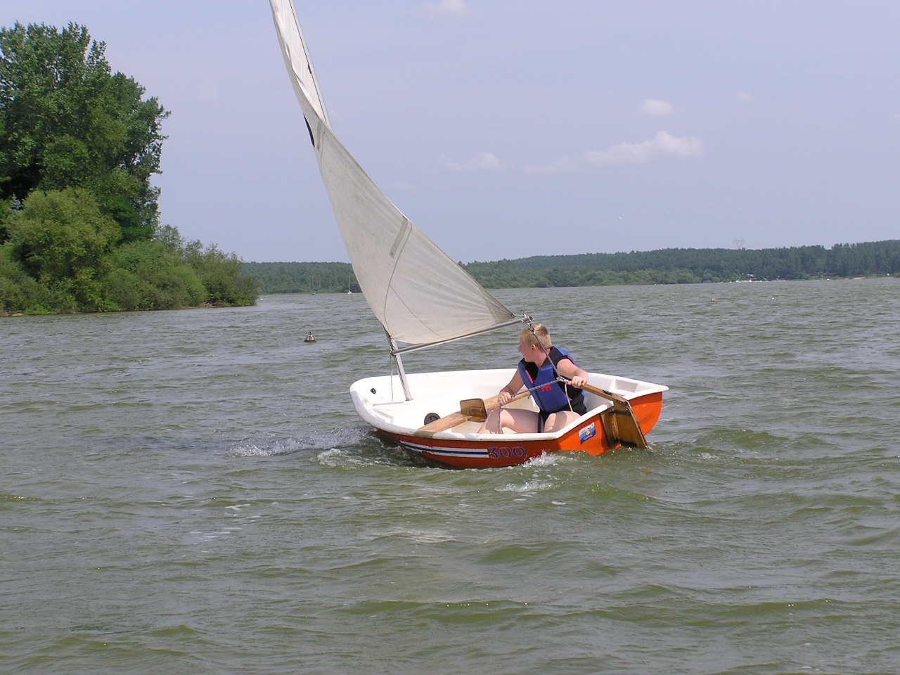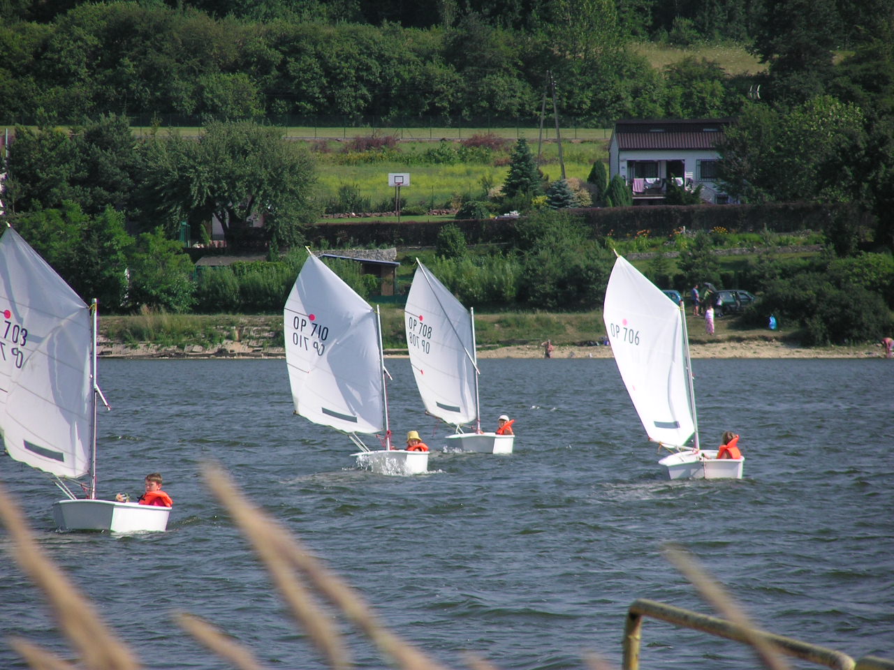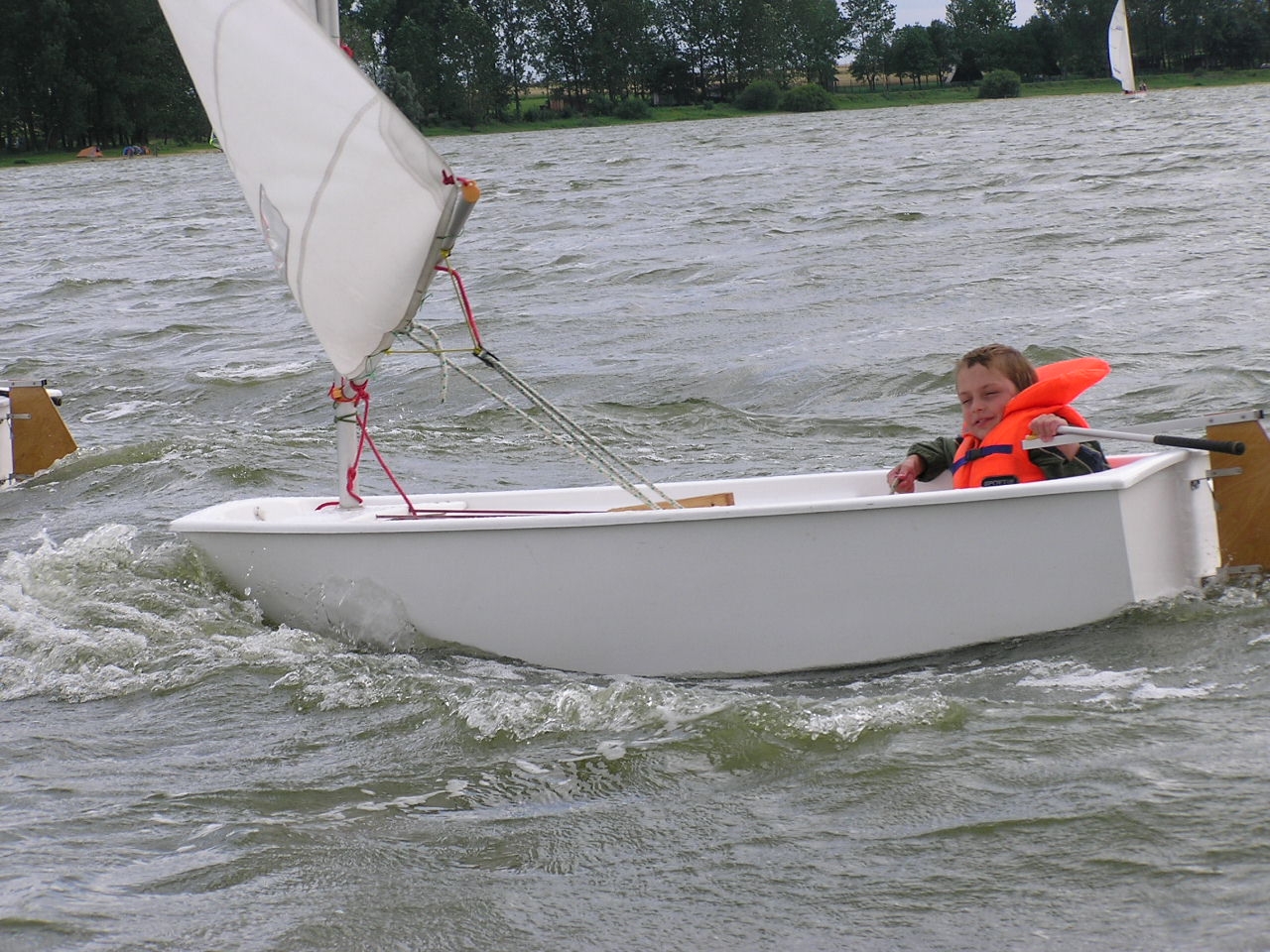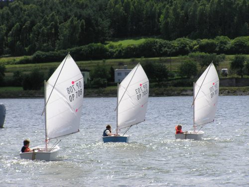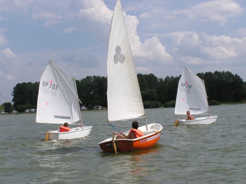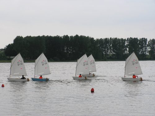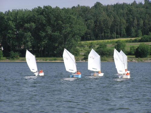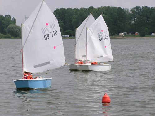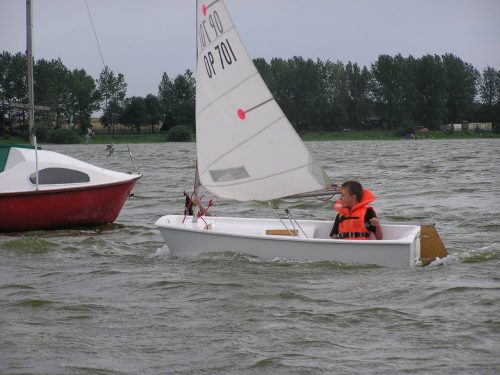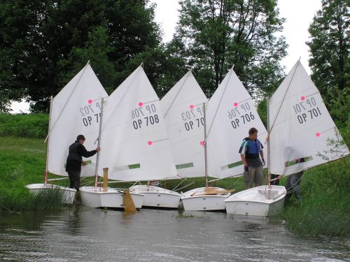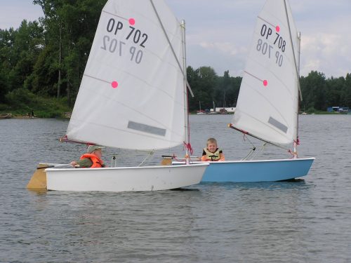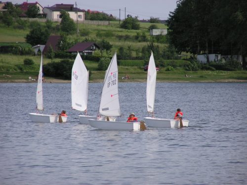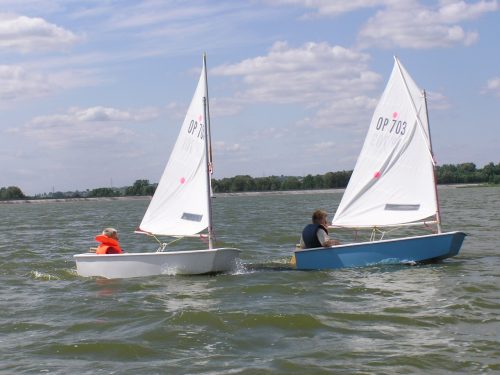 Nauka żeglowania na jachtach „Optymist” która obejmuje: samodzielne przygotowanie sprzętu do żeglowania, posługiwanie się sprzętem ratunkowym i asekuracyjnym, zachowanie równowagi