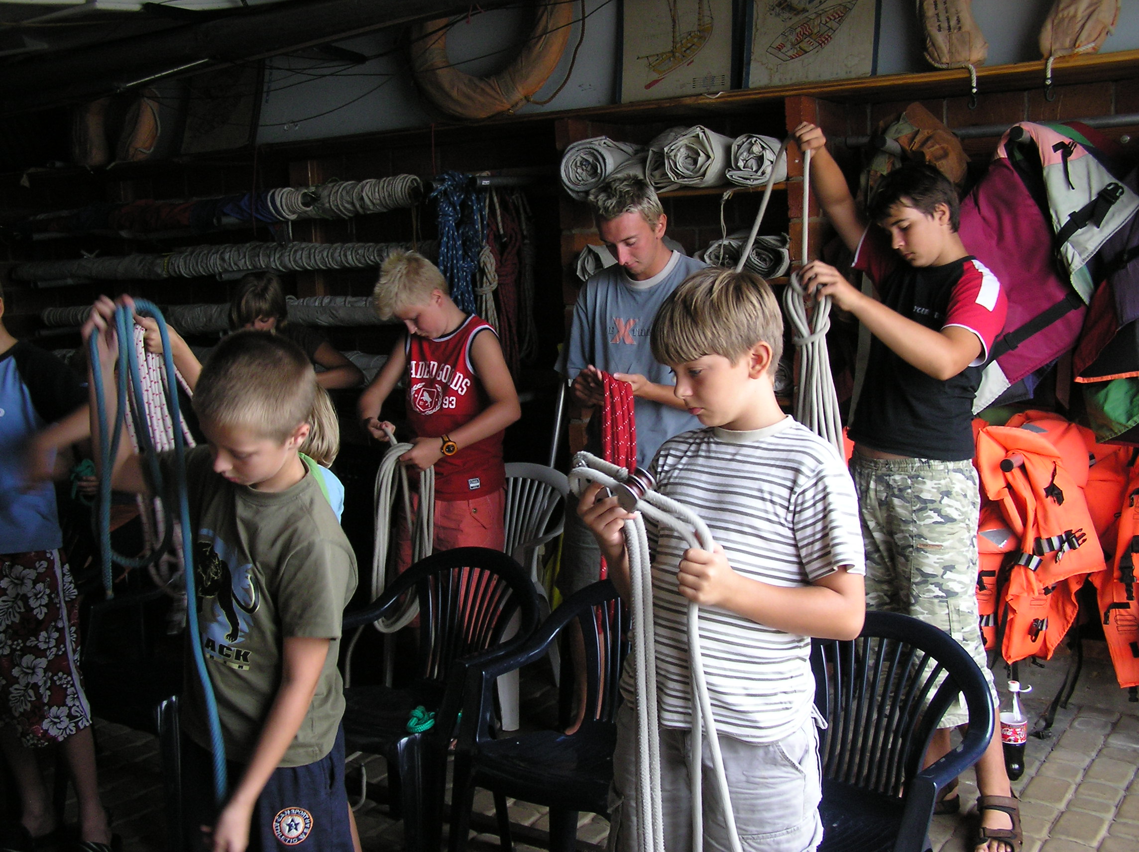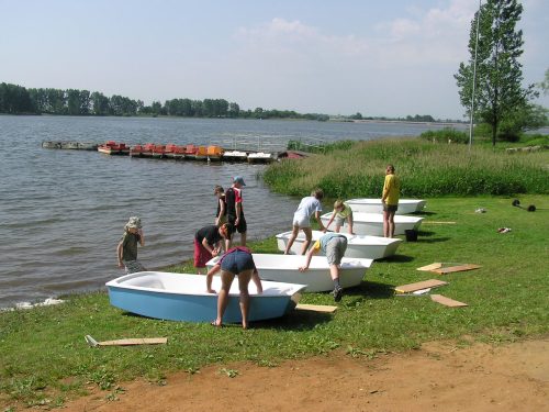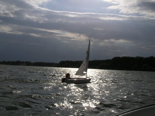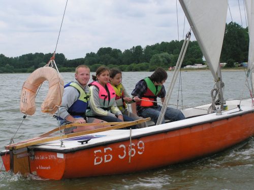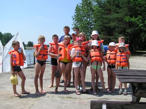 na żaglówce, manewrowanie jachtem, odczytywanie kierunku wiejącego wiatru, naukę zwrotów przez sztag i rufę, samodzielne żeglowanie na wyznaczonym bojami akwenie. Wdrażanie zasad bezpiecznego korzystania z akwenów wodnych. Uczęszczając do szkółki dzieci zaskoczą wszystkich bardzo szybkim opanowaniem podstawowych umiejętności żeglarskich